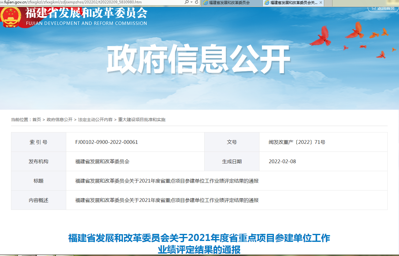 我公司担负监理“泉州晋江国际机场扩能革新工程非民航工程标段”项目,位于泉州市晋江市宁静中路118号泉州晋江国际机场,总建筑面积4.1万㎡。包括扩建海内、国际航站楼,迁建航管楼、空管塔台共2.7万㎡,革新原有航站楼1.2万㎡,新建人防地下室0.18万㎡,更新及新建多套运行系统。目前完成新建塔台8层及扩建海内航站楼一期的主体封顶施工及人防地下室主体施工50%。2022年2月8日,福建省生长和革新委员会评定我公司2021年度事情业绩为“2021年度事情业绩评定为A级的省重点项目参建单位”。