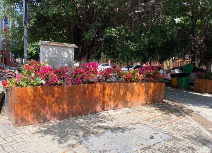▲种植花箱盆栽,从源头上杜绝占道经营、停车乱象,提升小区整体景观。