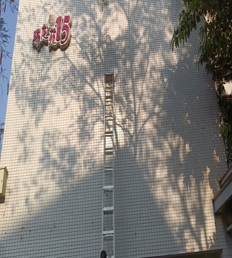 ▲清理小区楼房外立面宣传广告