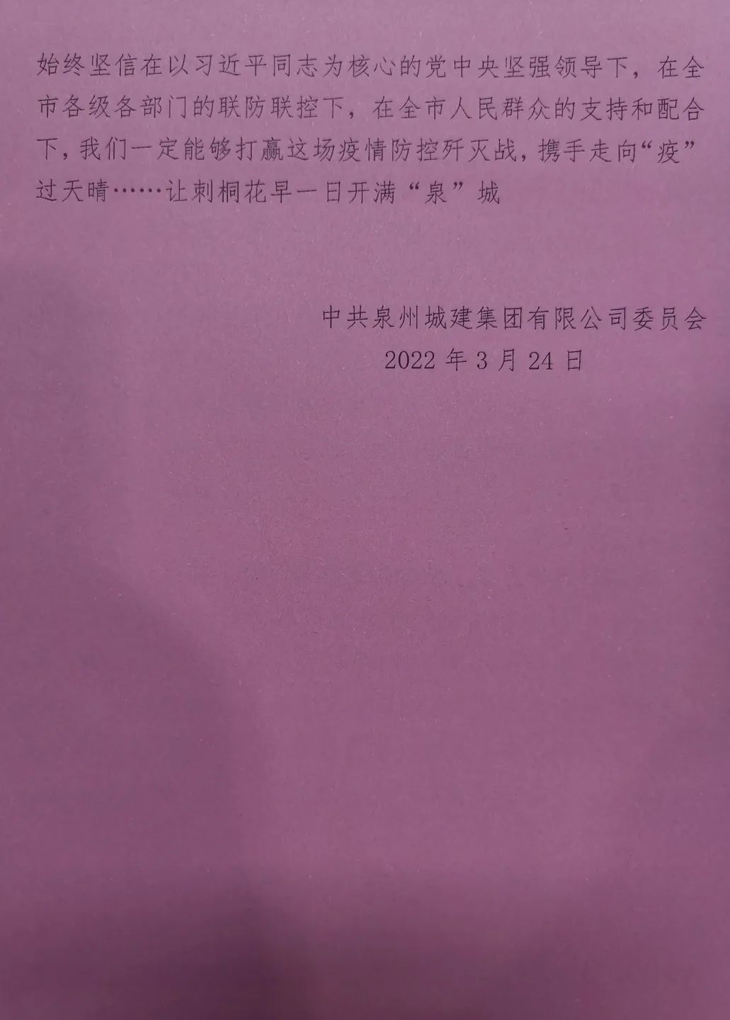 ¹¤³ÌÖÎÀí¹«Ë¾ÀÛ¼ÆÏò¸÷¼ÓÈëÈËÔ±·¢·Å¡°Ö·ÜÕ½ÔÚ°×ɳ½¡¿µæäÕ¾ÏîĿһÏßÁÐλ¹¤ÓѵÄÒ»·âÎʺòÐÅ¡±2000¶à·Ý£¬Ïò·ÜÕ½ÔÚÏîĿһÏßµÄÁÐ뽨ÉèÕß¹¤ÓÑÖÂÒÔÖÔÐĵÄлÒâºÍ¸ßÉеľ´Ò⣬лл¹¤ÓÑÃÇÔÚȪÖÝÕ½¡°Òß¡±×î¼èÄÑ¡¢×îÒªº¦µÄʱºò£¬ÖçÒ¹ÇÀ½¨¡°ÉúÃüÖ®ÖÛ¡±¡£