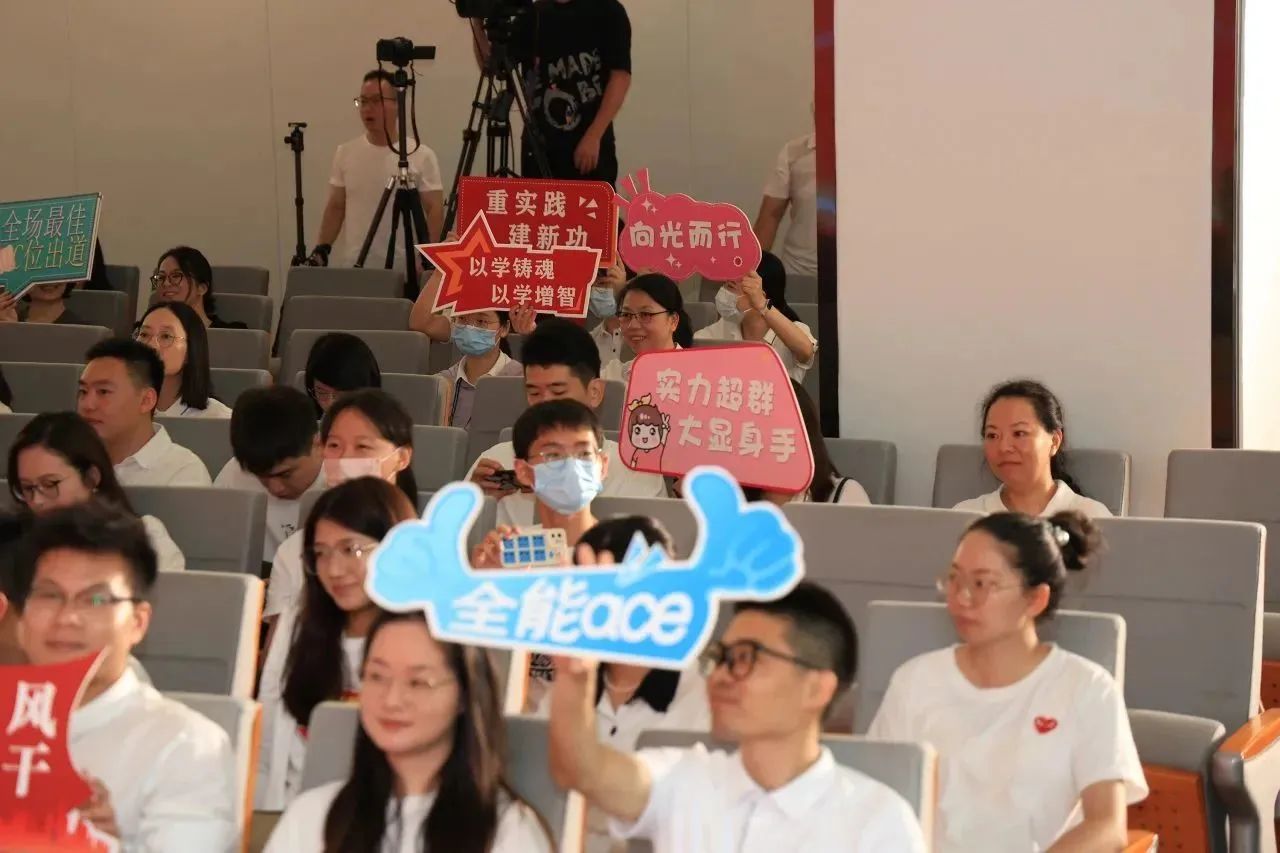 现场红旗飘扬、气氛热烈,在主持人的热情开场中,角逐正式拉开序幕!来自各企业的56名选手严阵以待,他们将通过“主题宣讲”“连词成段”的关卡考验,角逐21个奖项。现场观众也可通过“知识竞答”环节赢取个人纪念品,加入感满满!一起来围观吧!