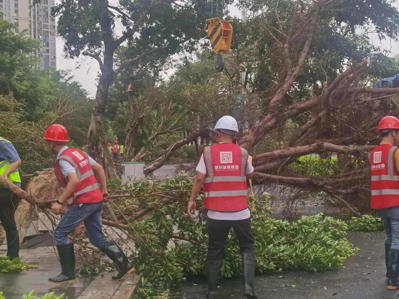 台风登岸后,对各在管物业项目电梯、二次供水设备、监控等设施进行逐一检查,发明损坏立即维修,实时排除险情 ;对物业小区倾倒树木、门路障碍物等进行全面清理,有序恢复小区生活秩序。