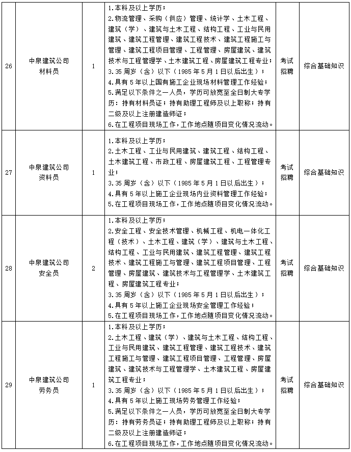 3ºÅ¸Úλסլ¿ª·¢¹«Ë¾³É¿Ø×¨Ô±¡¢5ºÅ¸Úλ¹¤³ÌÖÎÀí¹«Ë¾²â»æÔ±¡¢6ºÅ¸ÚλÖÐȪ½¨Öþ¹«Ë¾Äþ¾²Ô±1¡¢7ºÅ¸ÚλÖÐȪ½¨Öþ¹«Ë¾×°ÖÃÊ©¹¤Ô±¡¢10ºÅ¸Úλ³ÇÏçÎïÒµ¹«Ë¾¸±×ܾÀíµÈ5¸ö¸Úλ¼Æ»®ÕÐÆ¸ÈËÊýÓëÇкϱ¨ÃûÌõ¼þÈËÊýδµÖ´ï1:3±ÈÀý£¬È¡Ïû¿ª¿¼¡£